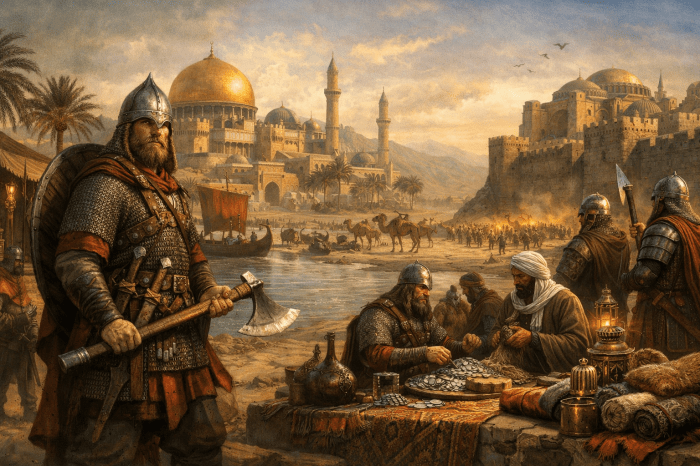 When most people picture Vikings, they see longships cutting through icy northern seas, raiding monasteries under gray skies. But history—like any good saga—rarely stays confined to expectation. Viking influence did not end in England or France. It stretched far beyond, reaching into the heart of the Middle East, into cities of gold, silk, and scholarship. … Continue reading Vikings in the Middle East: The Varangian Footprints in the Sands