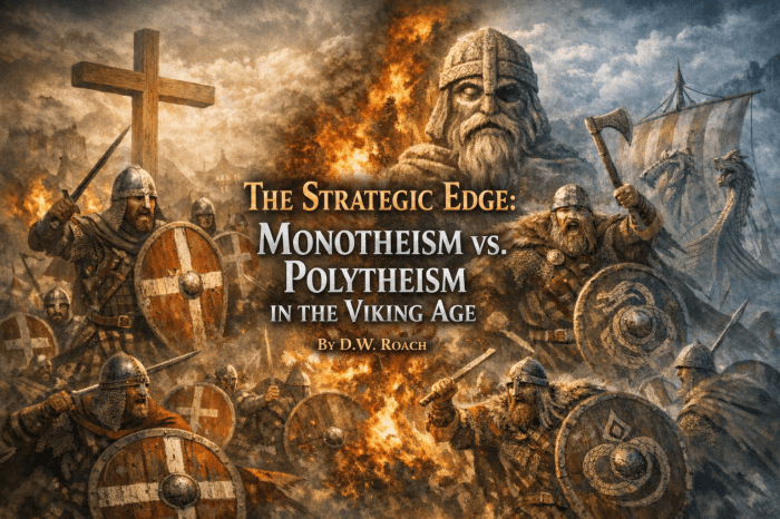 By D.W. Roach for marauderbooks.com Throughout history, belief systems have done far more than shape moral codes or explain the cosmos—they have structured societies, justified power, and, critically, influenced how wars were fought and won. During the Viking Age (roughly 793–1066 CE), the clash between polytheistic Norse paganism and increasingly dominant monotheistic Christian kingdoms provides … Continue reading Monotheism, Polytheism, and the Sword: Faith as Force in the Viking Age